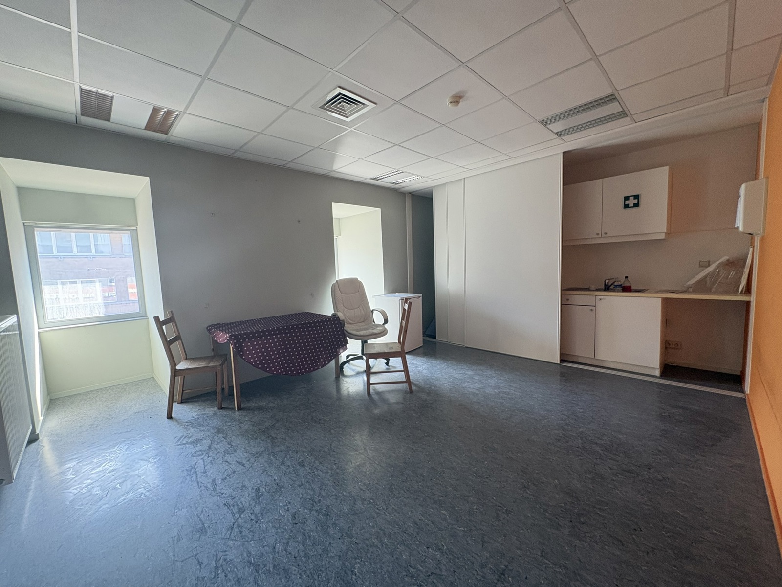 À louer : Face à l'hopital Marie Curie, à l'étage de la pharmacie, un espace professionnel parfaitement adapté à une activité dans le domaine des soins de santé (kiné, psychologue, infirmier, ostéopathe, etc.).